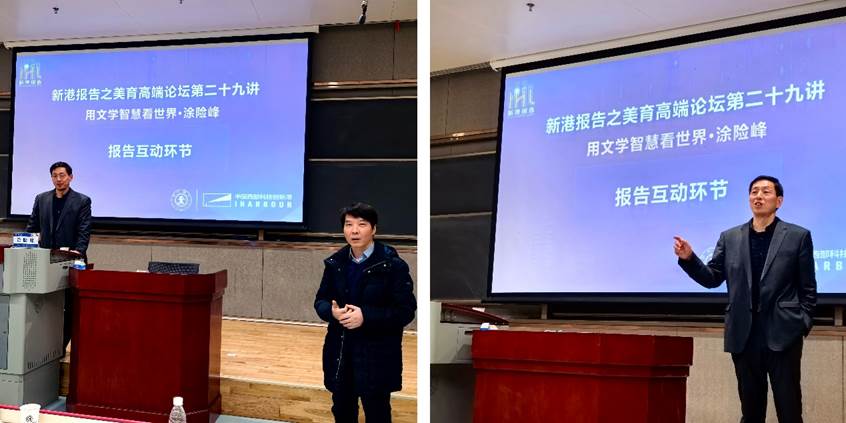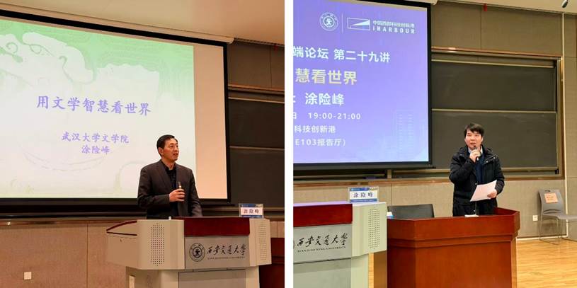 主办的“新港报告之美育高端论坛”第二十九讲在西安交通大学创新港校区涵英楼报告厅成功举办。本次论坛以“用文学智慧看世界”为主题,特邀武汉大学文pg电子app教授、比较文学与世界文学专业博士生导师涂险峰教授担任主讲嘉宾。涂险峰教授近年主要从事外国文学与哲学的跨学科研究。讲座由pg电子app下载