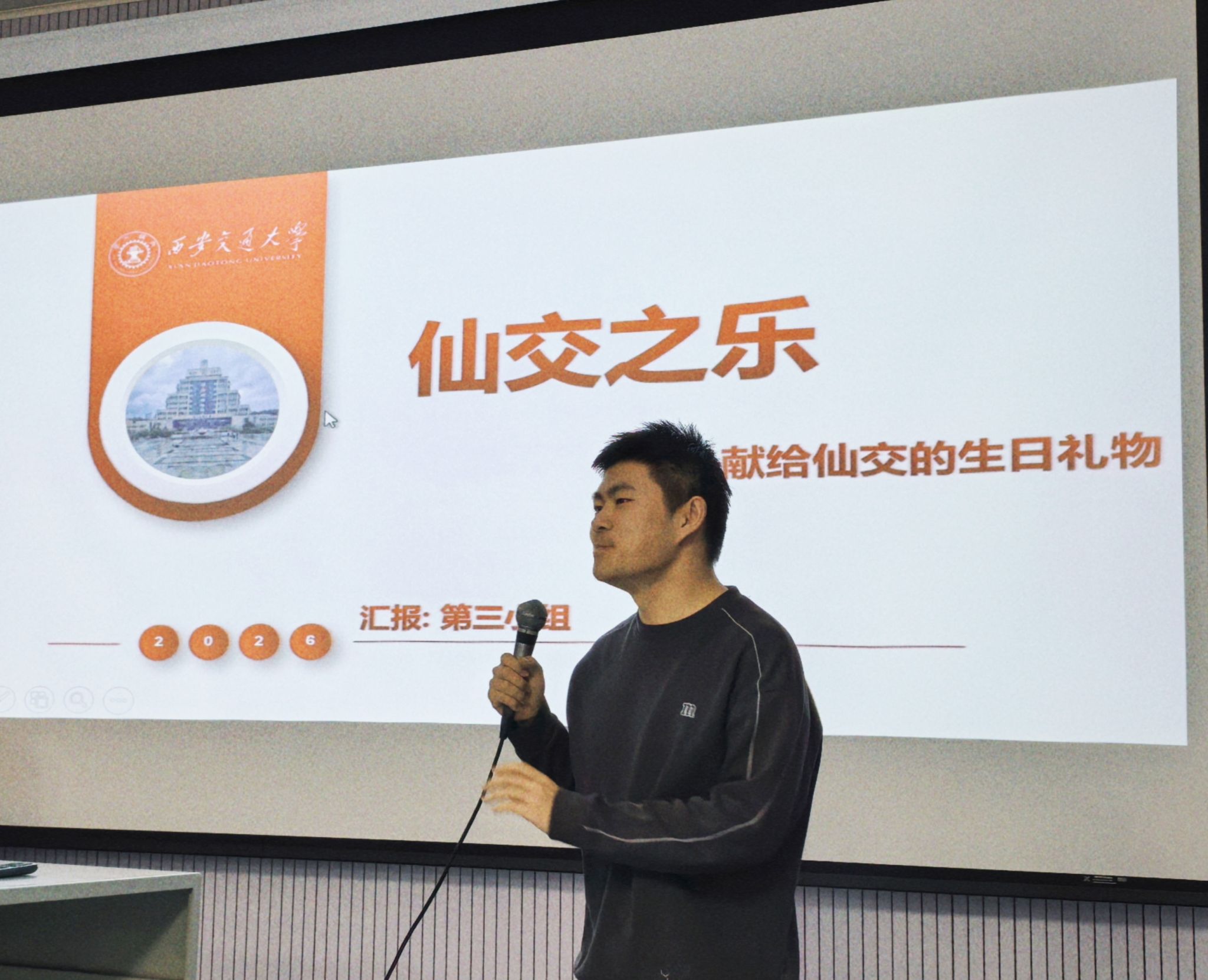 此次校园原创音乐课堂分享活动的圆满落幕,不仅是《“中国风”与中国古典音乐》课程小组作业的顺利收官,更是同学们以创新方式致敬母校的生动实践。活动以AI原创音乐为载体,将青春创意、古典文化与母校情怀相融,为仙交献上了一份温情满满、独具匠心的生日祝福,也让同学们在实践中体会到音乐创作的乐趣与文化传承的意义。