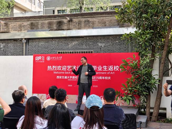 2026年4月8日,西安交通大学迎来建校130周年暨西迁70周年华诞,全球校友齐聚古都西安,共襄盛举、共叙情谊。人文社会科学pg电子app艺术设计系(原艺术系)历届校友从全国各地重返母校,在梧桐道上重温青春岁月,于百卅校庆中传承西迁精神,以设计学专业力量为笔,以艺术匠心为墨,献礼母校百卅辉煌征程。