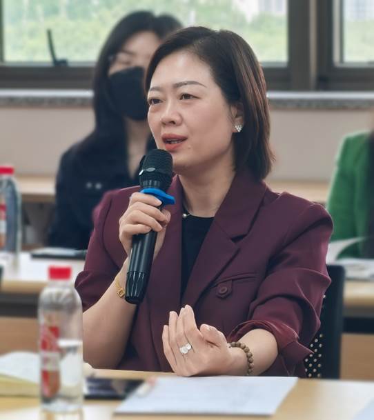 在“共建共融促提升——教师代表为机关工作提质增效建言献策”环节,党员教师们积极建言。贺力围绕教师成长与教材编写、郝明松聚焦学术发表与绩效评价、赵一青呼吁持续扩大共建范围、何静建议搭建跨学科资源共享平台,分别提出了建设性建议。现场互动热烈,达成诸多共识。
