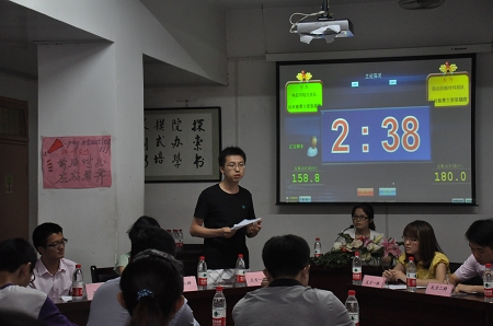 6月3日四个代表队的代表由抽签决定了辩题和对阵双方,在紧张的准备了2天后,于6月6日晚7点在文治书院报告厅举行了初赛。初赛分为上下两个半场,上半场是电信pg电子app代表队对阵能动机械材料联队,辩题为:反对浪费主要依靠道德约束还是制度约束。对阵双方实力较为悬殊,能动机械材料联队从一开始就掌握主动权,并一直紧咬对方漏洞不放,最终获得了胜利,电信pg电子app的何阳同学获得了最佳辩手;下半场是管理pg电子app代表队对阵pg电子app下载