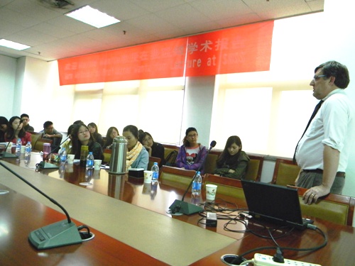 报告中,Wanta教授首先介绍了国际新闻的重要性,之后重点讲解议程设置(agenda setting)理论及其本人所开展的研究,通过实证数据,选择中、日、美、德、俄、印度、巴西等十二个国家为研究对象,展示新闻报道与国家形象认知之间的关系。随后,Wanta教授又以当前常用的社交网络如Facebook,Twitter为例,阐述新闻媒介和国家形象之间的关联及对受众世界认知的影响。最后,对美国佛罗里达大学及新闻学系做了介绍,并重点介绍了该校在人才培养方面的政策和举措,并回答了学生提出的问题。