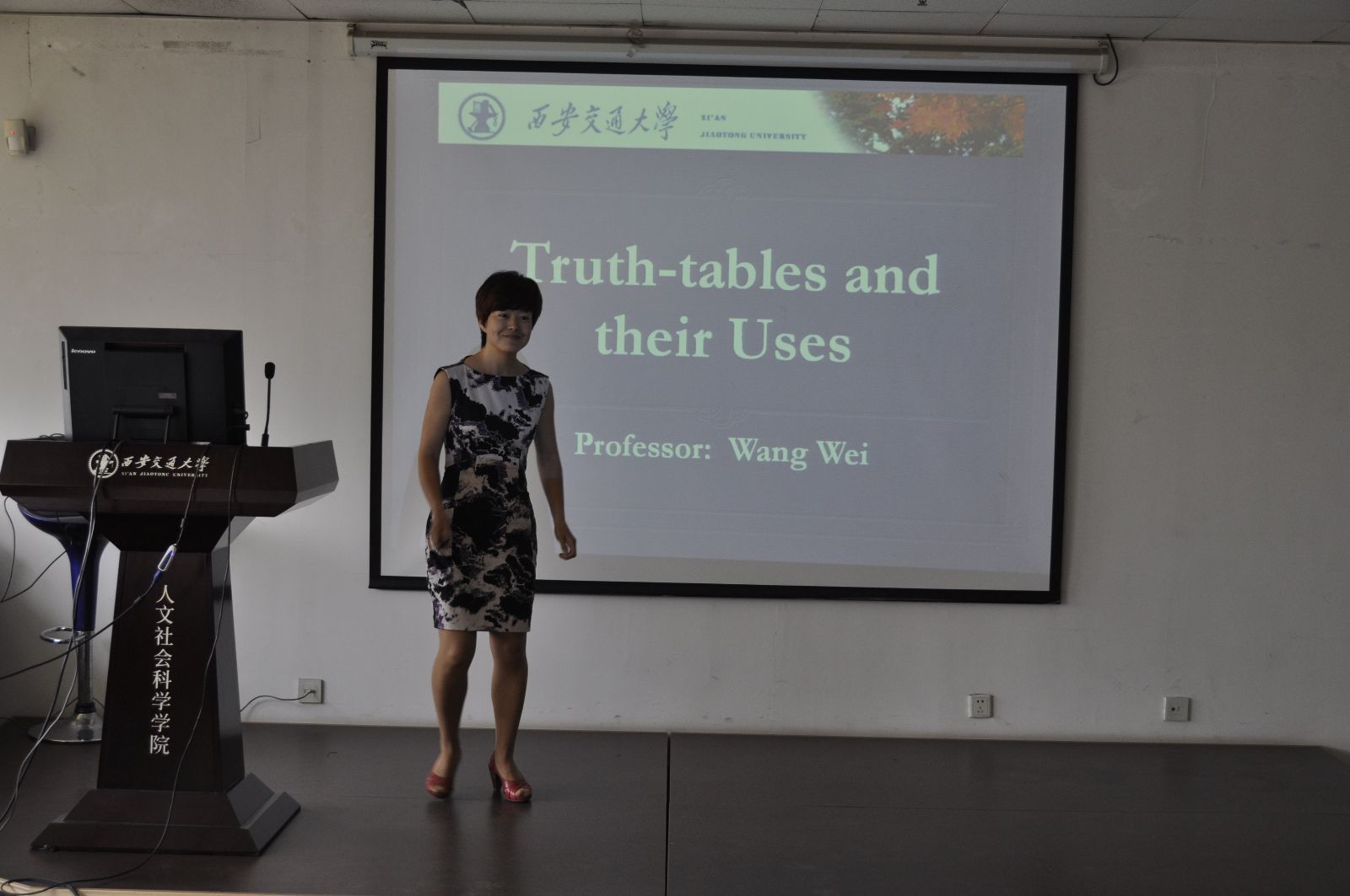 此次报告会,四位老师分别用全英文授课30分钟,内容分别是《定量数据分析导论》、《中国的大众文化》、《自然之诗:19世纪欧洲的风景画》以及《真值表及其应用》。四位老师流利的英语、精美的PPT、巧妙的问题设计、流畅的课堂讲授,以及认真负责的上课态度,给大家留下了深刻印象。