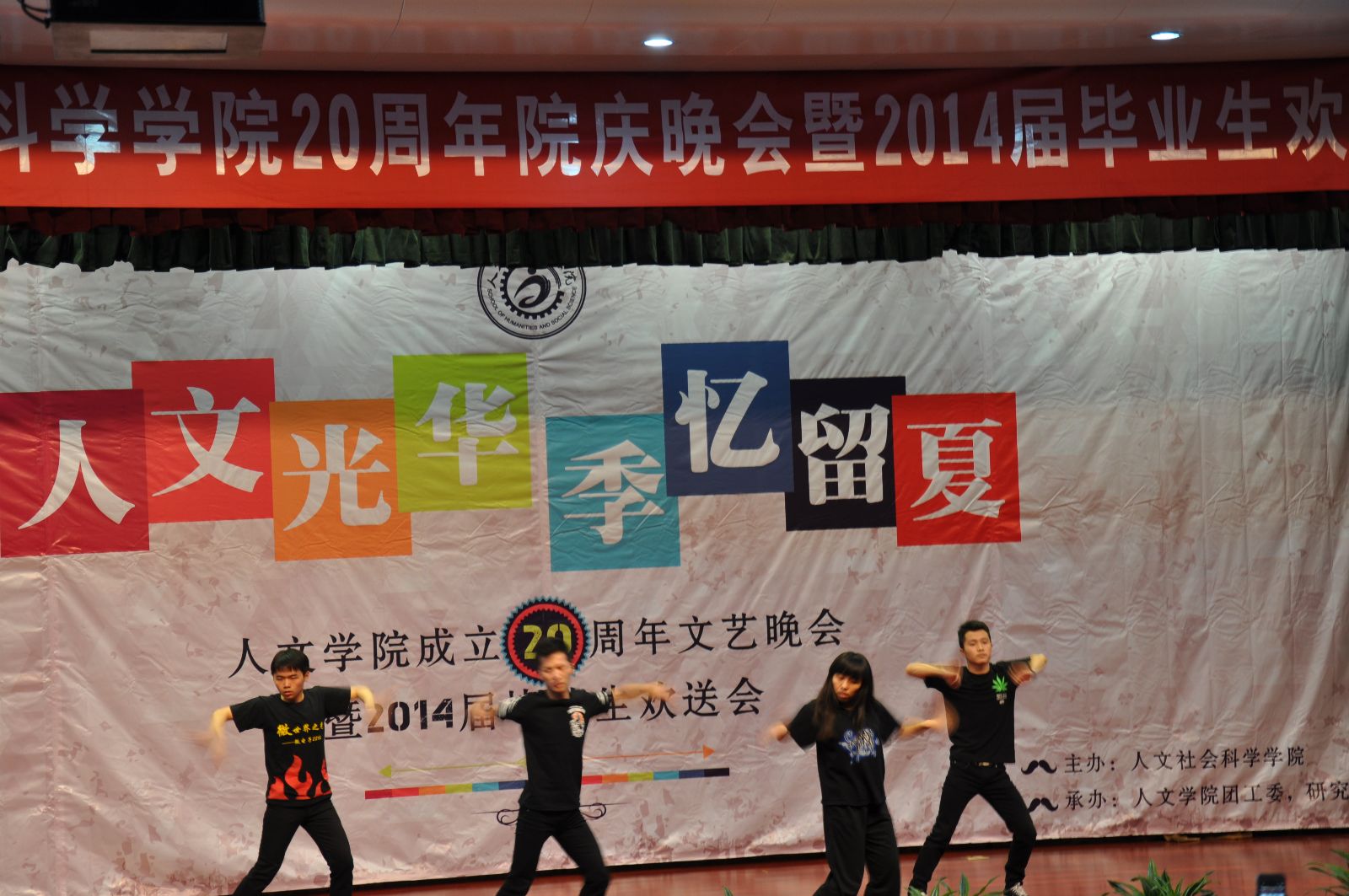 社会学系的硕士生用一首《奔跑》掀起了本场晚会的第一个高潮,他们的歌声正代表了人文学子的青春与活力。Corner choreo交大舞团职业编舞伴舞工作室娴熟的街舞《Choreo》向我们展示了舞蹈的魅力。文艺学的陈晨同学在小品《超幸福鞋垫》中展示了人文学子的诙谐幽默与伶牙俐齿。一段《精武门》,一个八尺男子汉,一袭黑衣,太极、双节棍、流星锤,让在场观众沉浸于武术的魅力之中。