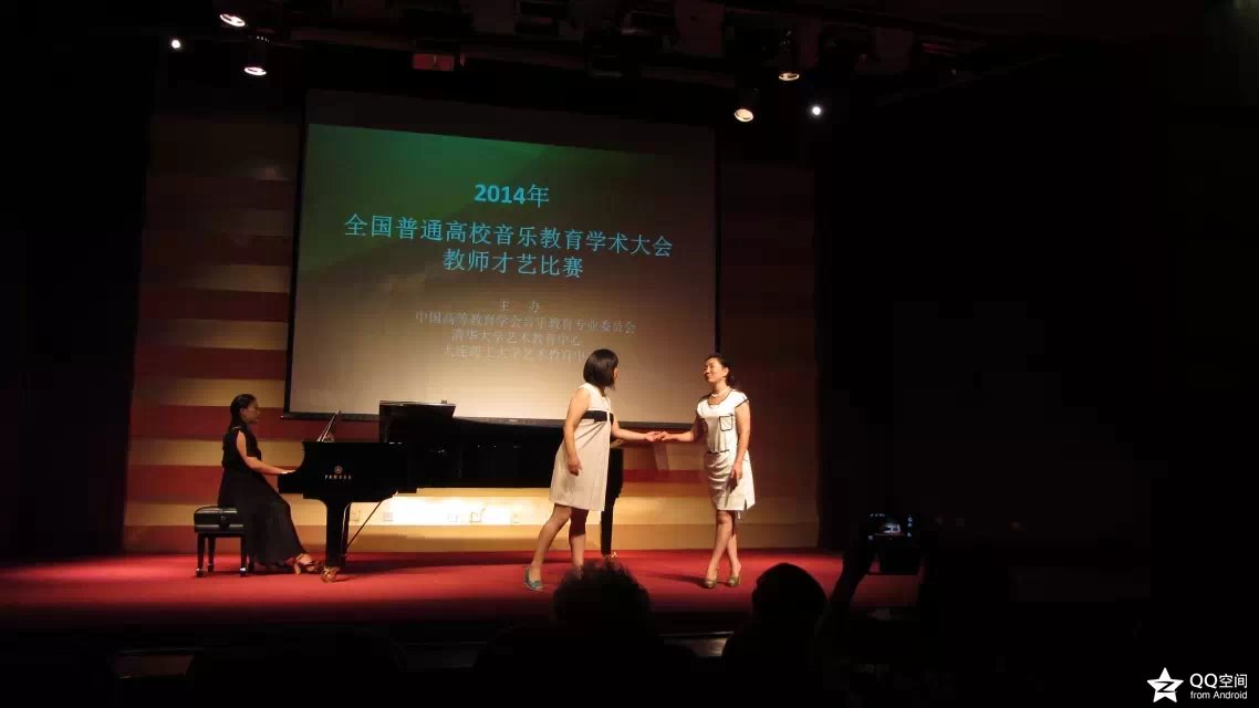 在论文交流环节,文茹老师的《非物质文化遗产进课堂的设想》一文受邀在大会进行宣读;在授课竞赛中李娟老师和曹耿献老师以出色而精彩的演讲获得大赛二等奖的佳绩,梁睿老师获优秀奖。在教师才艺技能比赛中,李娟与曹耿献老师再以二重唱《晚风轻柔》荣获二等奖;金晨老师和梁睿老师也分别以一首法语歌剧《流吧,流吧,我的眼泪》和古琴曲《流水》获得二等奖。