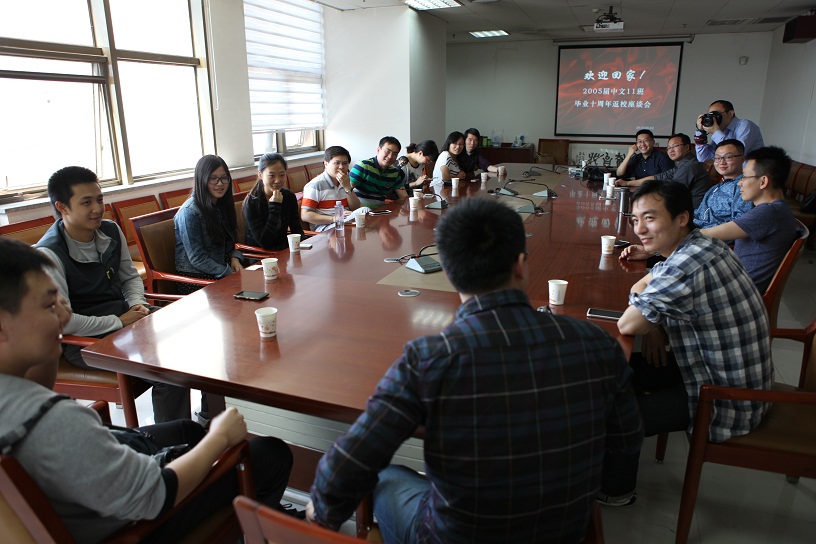 2015年5月2日中午9点,2005届中文11班20名返校校友齐聚主楼E-610会议室,与当年的班主任张勇老师一起共话十年发展。2015届中文11班部分同学也应邀出席座谈会。