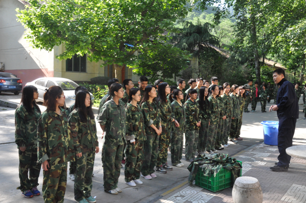 早上八点半户外拓展训练正式开始。同学们纷纷换上营地提供的迷彩服,个个精神抖擞,听候教练员的指挥。