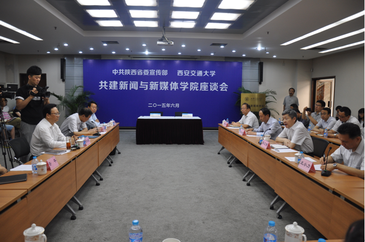 6月11日上午,中共陕西省委宣传部和西安交通大学共建“新闻与新媒体pg电子app”座谈会在交大兴庆校区科学馆207召开。陕西省委常委、省委宣传部部长景俊海,陕西省人大常委会副主任、西安交大党委书记张迈曾,中共省委宣传部副部长、陕西省记协主席薛保勤,交大党委副书记、纪委书记赵昌昌、党委副书记宫辉等校领导出席座谈会。座谈活动由校党委常务副书记王小力主持。