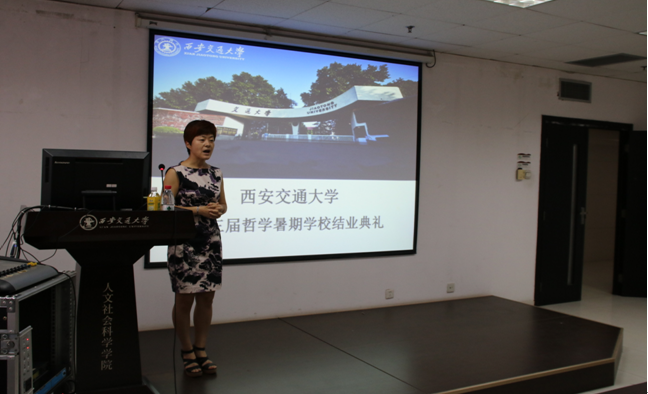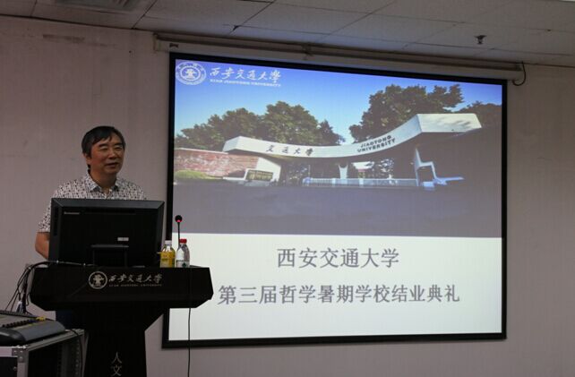 张帆教授首先在结业典礼上发表致辞。他首先对本次暑期学校来自全国各地的学员表示能够前来西安交通大学参加暑期学校的学习表示欢迎。接下来,他简要回顾了本期暑期学校各位主讲教授的授课内容并做了精彩点评。他表示,虽然本次暑期学校结束了,但并不意味着各位学员和暑期学校交流的结束,他欢迎学员们今后还就继续关心的哲学话题与他和各位哲学系的教授进行交流,欢迎有志于在哲学方面继续深造的同学报考西安交通大学的研究生、博士生和博士后。