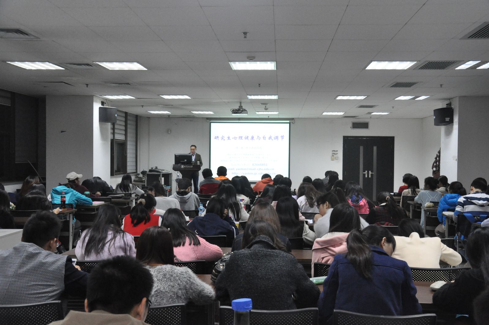邀请校心理健康教育与咨询中心主任姚斌老师在主E703举办了主题为“研究生心理健康与自我调节”心理健康讲座。本次讲座由pg电子app下载