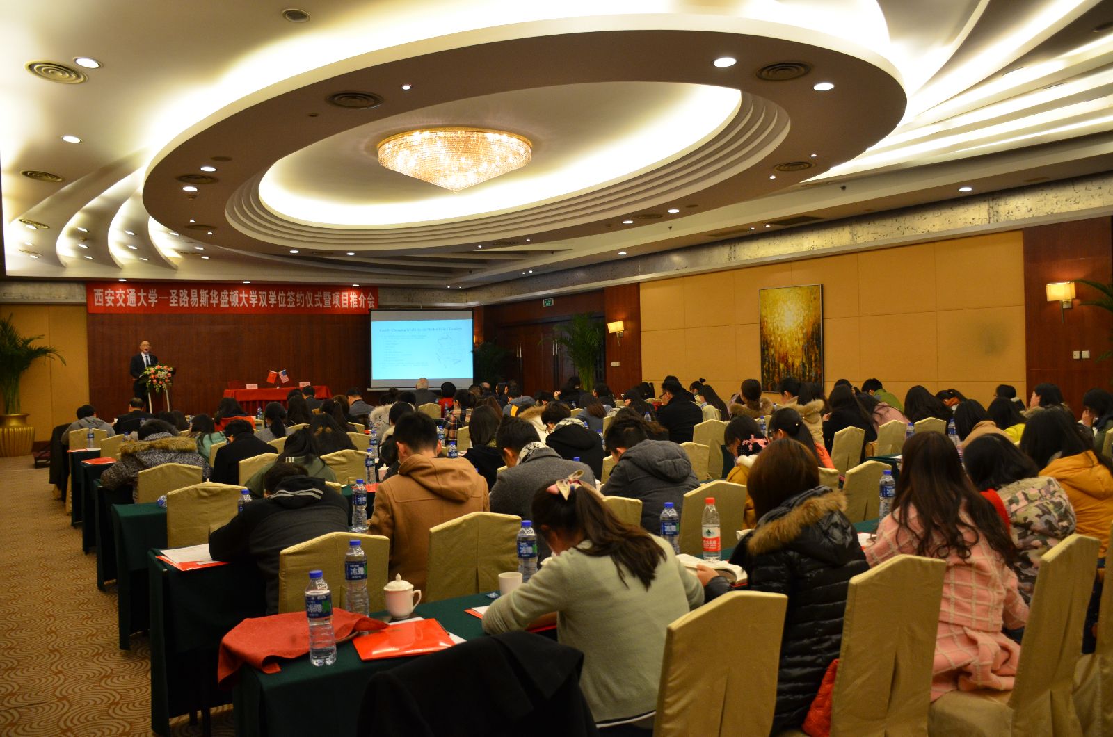 12月17日(周四)上午9点30分,西安交通大学——圣路易斯华盛顿大学(下称:华盛顿大学)双学位签约仪式暨项目推介会议如期在索菲特酒店举行。圣路易斯华盛顿大学副校长James Werstch、布朗pg电子app院长Edward Lawlor、助理副校长郭申阳教授以及华盛顿大学校友、贝塔斯曼·欧唯特(中国)副总裁徐欣,我校国际合作与交流处处长梁莉、研究生院副院长何茂刚、pg电子app下载