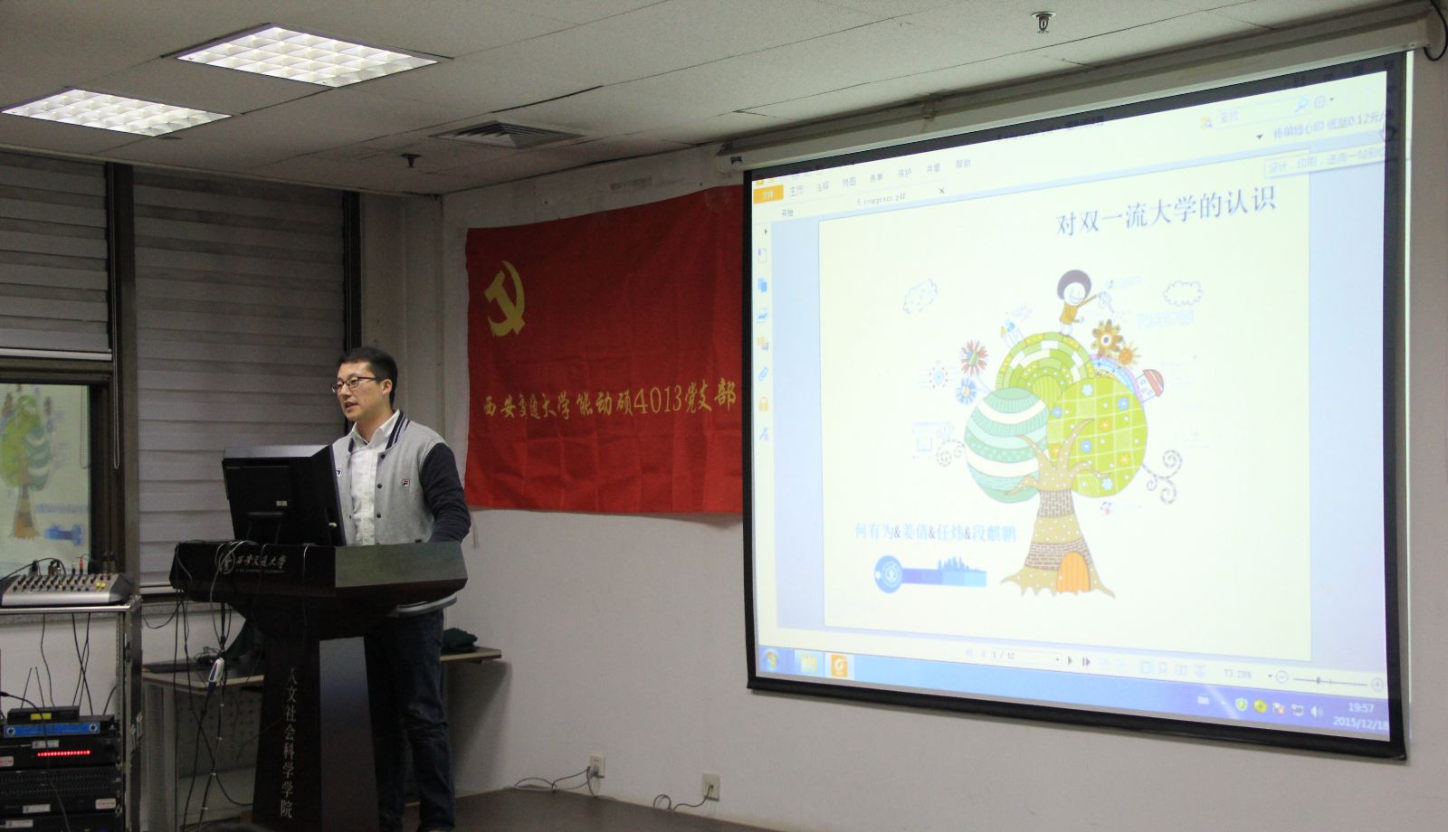 在自由讨论环节,硕5099支部的王丽丽谈到,我们学生是高校创建双一流的重要力量,我们要真正做好自己的本职工作:学习和科研,为我校创建双一流舔砖加瓦。王立典、李亚楠等同学也对此纷纷做出响应,认为我们应从自身做起,投身于实际。于媛芳老师谈到,“我们应该坚守大学所特有的精神,比如我们的‘西迁精神’。同时,希望我们能够结合自身学习,勤于思考,共同为交大的美好明天而奋斗。”