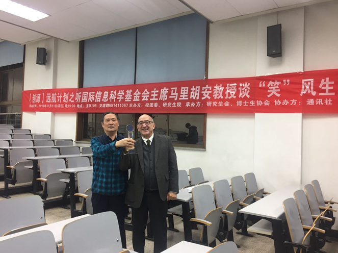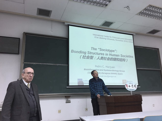 邬焜教授邀请,国际信息科学基金会主席、联合创始人,国际信息研究学会副主席,西班牙阿拉贡健康科学研究中心主任Pedro C. Marijuan教授于11月4号至11月14号顺利完成在我校为期十天的学术访问。访问期间,Marijuan教授面向全校师生举办三次讲座,与信息哲学专业师生进行一次座谈,此外,与国际信息哲学研究中心建立了学术领域的若干合作意向。