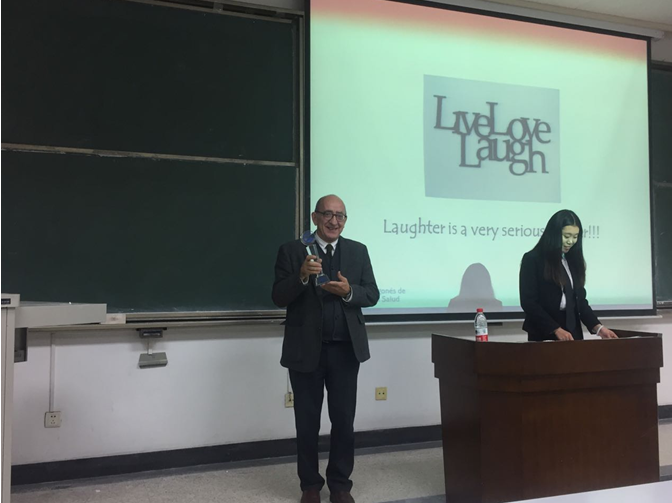 11月11日19:00,Marijuan教授在主楼D座105进行了“创源”科技学术论坛远航计划系列报告——《laughter!》。讲座通过向观众展示神经运算的图谱和过程,统计分析得出人类8种笑声背后的情感动机,从而指出神经运算在区别笑声类别时发挥的作用以及笑声结构在人际交往过程中所呈现的不同情感与情绪。讲座完毕,Marijuan教授接受“创源”论坛纪念奖杯并与邬焜教授以及论坛组织者合影留念。