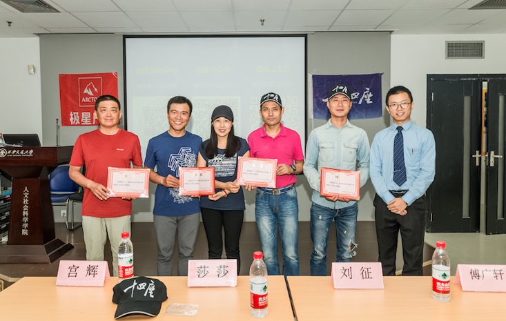 参加此次活动的还有很多资深山友。其中,傅广轩先生、蔡青先生、方燕女士都是成功登顶珠峰的勇士。傅广轩先生向我们讲述了他选择攀登的原因。他认为人的一生不仅要横向走和纵向走,更重要的是要去追寻人生的高度,而攀登雪山对傅先生来说,正象征着他对人生高度的不断追求。蔡青先生则强调了前期准备的重要性。充足的训练、良好的设备以及对山峰情况的了解是成功登顶的重要保证。陕西登顶珠峰女子第一人方燕女士讲述了她自己的登山经历。方女士首次攀登珠峰时遇到了地震而不得不选择下撤,但她没有放弃,终于在2016年坚持挑战珠峰,最终实现了自己的梦想。最后,我校利涉大川社团聘请张伟、傅广轩、蔡青、方燕、刘征为社团顾问并颁发聘书。