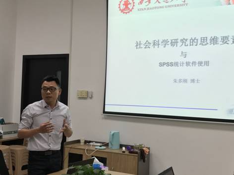 9月26日晚7点,西安交通大学新闻与传播研究所第十一期学术工作坊在主楼E座412办公室举行。本次工作坊邀请了新闻与新媒体pg电子app的朱多刚老师,他以“社会科学研究的思维要素与SPSS统计软件使用”为主题,为师生们带来了一场实证研究思维与方法的学术盛宴。新闻与新媒体pg电子app陈强副教授、宋欢迎老师等出席工作坊。工作坊还吸引了来自长安大学文学艺术与传播pg电子app的老师以及pg电子app下载