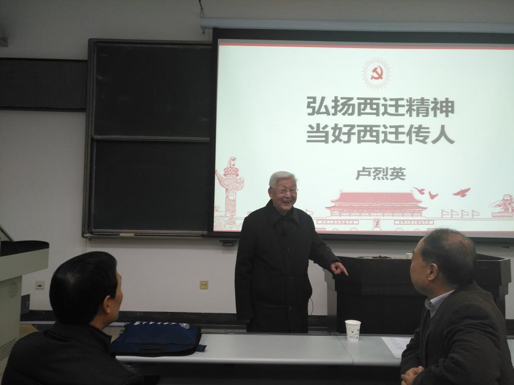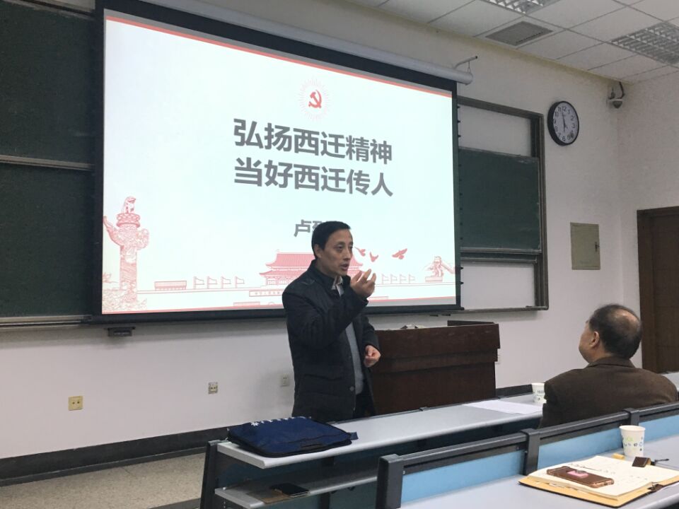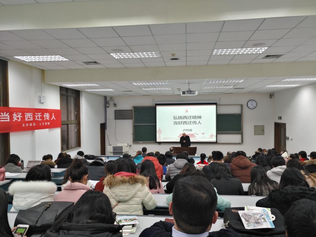 在主楼C106举办以“弘扬西迁精神,当好西迁传人”为主题的西迁精神报告会,邀请西迁教授卢烈英为师生分享西迁故事,解读西迁精神。李黎明院长主持报告会,党委书记马晓彬、副院长王伟、张勇和pg电子app下载