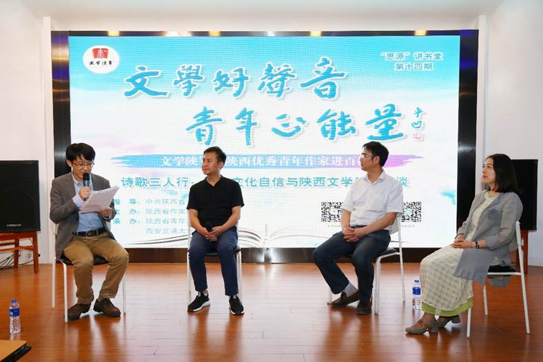 中文系和教职工读书协会协办,搭载思源讲书堂文化交流平台,以“诗歌三人行·民族文化自信与陕西文学传统漫谈”为主题展开。到场的三位主讲人分别是:中国作协会员马慧聪(陕西省青联委员,陕西省作协理事,《延河》下半月刊主编),中国作协会员马召平(陕西省作协理事,高级记者,陕西广播电视台新闻评论部副主任),中国作协会员宁颖芳(陕西省作协理事,咸阳市作协副主席,《秦都》杂志主编)。陕西省青年文学协会常务副会长王琪,陕西省青年文学协会副会长杨枫、张雅颉,陕西省青年文学协会副秘书长马妤,陕西省青年文学协会办公室主任孙毅超,西安交通大学党委宣传部副部长李重作为嘉宾出席活动,中文系李明老师作为主持人,与广大师生共同品读诗歌和传统文化的魅力,领略文学之美。