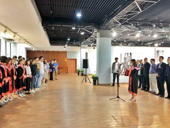 学生代表刘小琳首先发言。她回首四年大学生活,对母校、恩师、同窗好友表达深切的感恩之情。她表示作为交大人,今后会不负师恩,更加努力,在书法艺术的道路上坚持走下去。