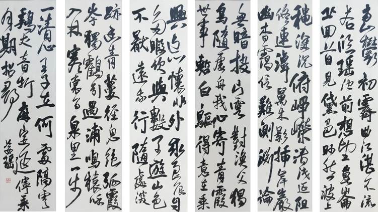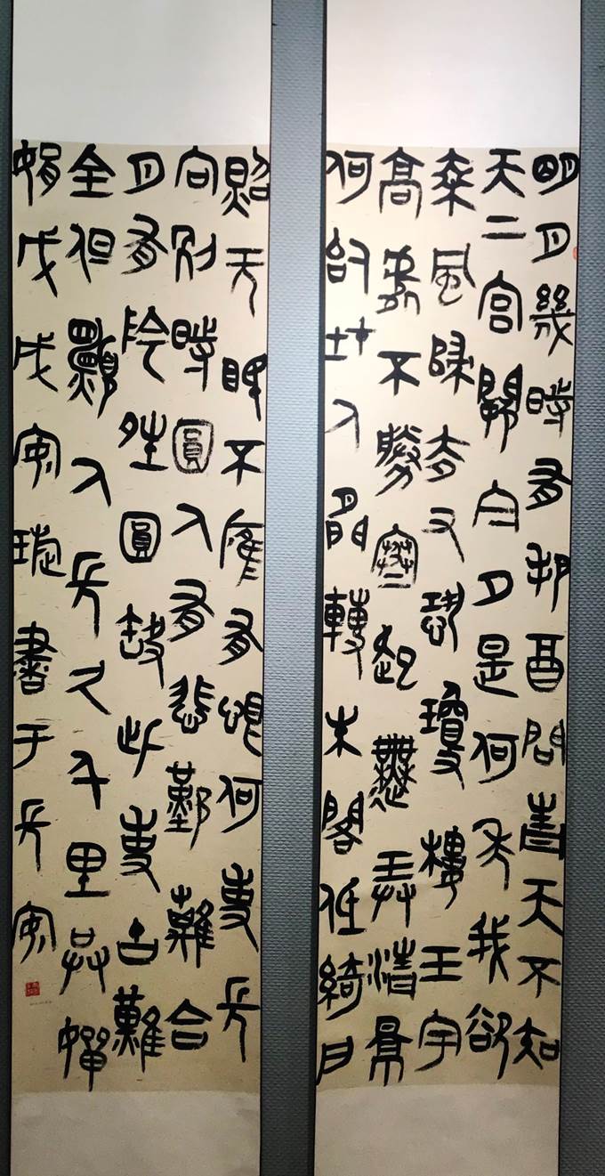 本次展览由书法41班的14名同学在书法系全体教师指导下完成,共包含篆刻作品75件,书法作品62件,包含篆、隶、楷、行、草五种书体,涵盖条幅、条屏、对联、手卷、扇面、册页和中堂等多种书法表现形式。本次参展作品结合古代传统与时代气息,融入本科同学们的个人风格,可谓百花齐放。