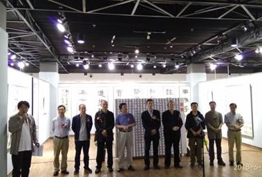 开幕式结束后,到场嘉宾在书法系师生指引下参观了展览并合影留念。