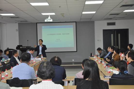 杨处长首先介绍了如何提升人文艺术通识教育内涵建设,从“通识教育+宽口径专业教育”的人才培养模式解读、国外大学的pg电子app设置、我校当下通识教育课程现状三方面展开,认为我校目前人文艺术通识课程建设主要存在五点问题:教师和学生的通识教育理念不到位,没站在基础和育全人高度理解通识;课程通识性不够:课程体系结构性弱、考核随意,教师归属感不强,学生评价整体不高;课程外的其他环节不丰富,没有形成体系化;通识课程体系不足以支撑“通识培养目标”。他还指出,要切实提升通识课的内涵建设,打造真正的通识课,从四个方面下手:首要,加强学习、研究,利用好公众号、课程群、会议、论坛、讲习班等平台;其次,树立通识课是pg电子app下载