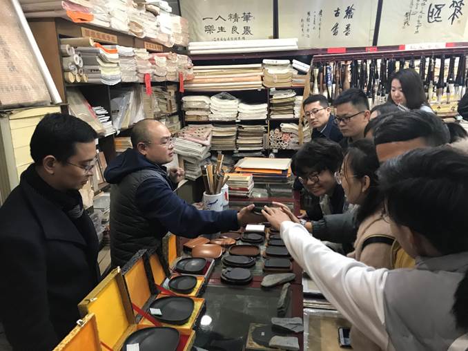 雷掌柜通过对各地产纸的制作成分、制作步骤的分析,为大家介绍了不同产地纸张的不同特性。雷掌柜还为大家讲解了各种砚台的特性及细致分类,通过展示实物使大家直观地了解到各种砚台的特性。砚与墨相伴而生,墨的制作过程也是十分有趣,大家对雷掌柜展示的上等墨块更是赞叹不已。