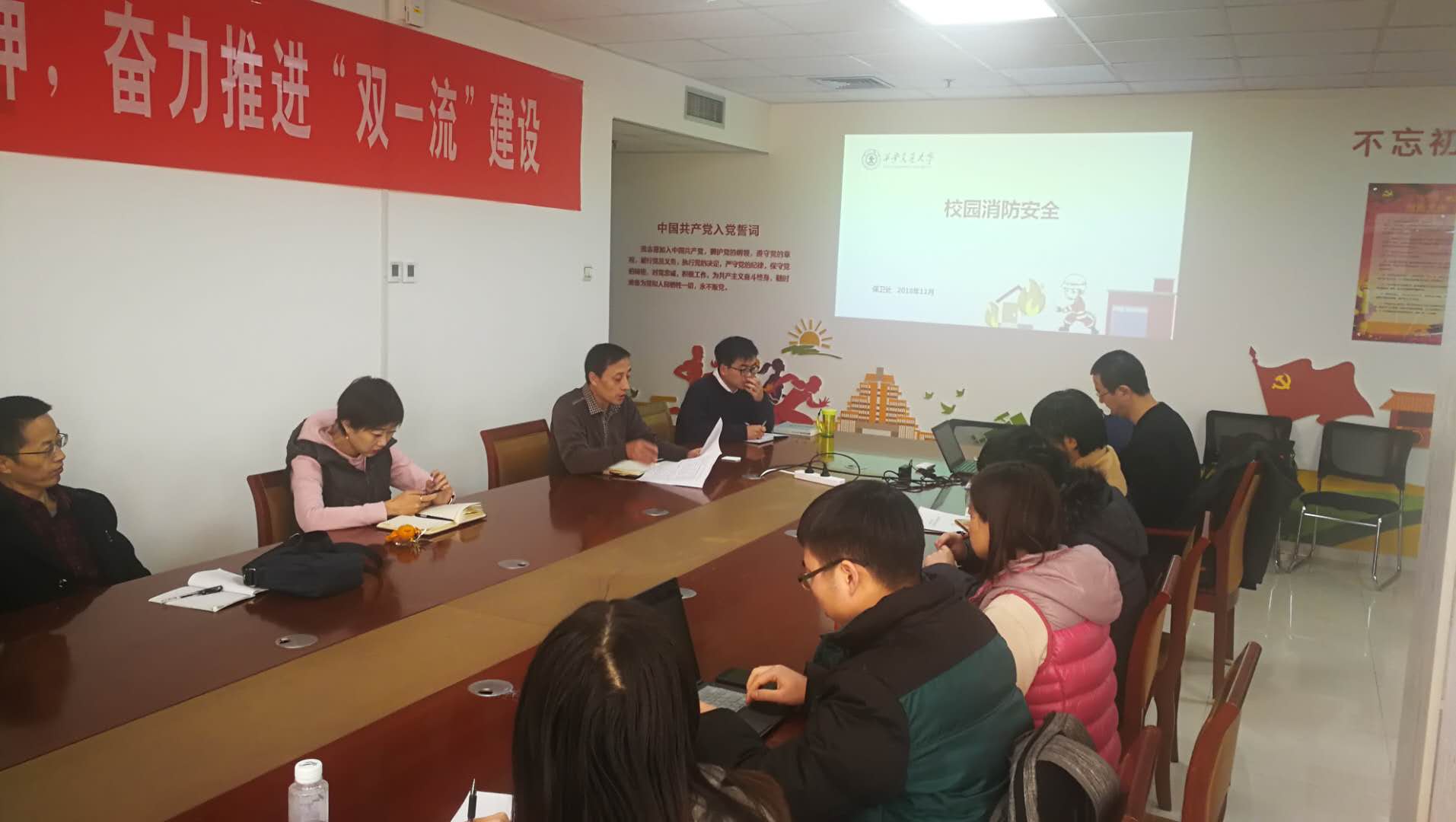 首先,马晓彬书记传达了日前学校召开的安全检查工作会的会议精神,组织学习教育部办公厅”关于切实做好岁末年初学校安全生产的通知”、省教育厅“关于开展各级各类学校安全大检查的通知”以及学校安全检查工作通知等三个文件要求。