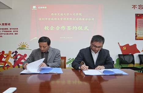 党委书记马晓彬与金地物业管理集团西北物业公司总经理周小犊正式签署“西安交通大学本科生学科级校外实践基地”协议书,标志着金地物业管理集团西北物业公司与西安交通大学校外实践基地正式落地。这也是优秀物管公司与名校强强联手,在拓宽行业人才储备渠道、优化人才发展模式探索道路上的又一个里程碑。