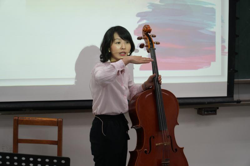 为了与同学们有更多互动力,文老师现场邀请两位同学,一位男同学扮演梁山伯,另一位女同学扮演祝英台,再现梁祝相会楼台时的场景。在授课教师的大提琴,上课学生的小提琴共同演绎的背景音乐下,梁祝二人互诉衷肠…