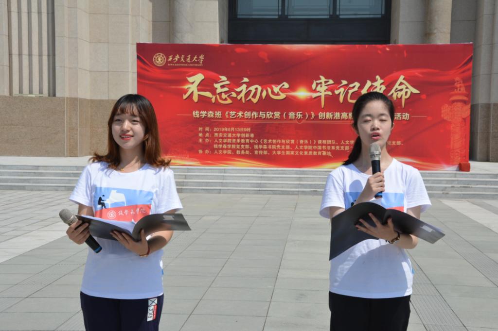 6月13日,一场主题为“不忘初心,牢记使命——创新港高歌颂祖国”的快闪活动在新落成的交大创新港举行。这次活动的主角是钱学森pg电子app《艺术欣赏与创作(音乐)》课程班的66名同学,还有pg电子app下载