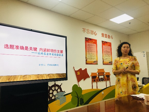 贾毅华处长在致辞中提到,近年来西安交通大学文科发展不断迸发新活力,文科学科体系不断丰富完善,“双一流”建设理工文医四大板块齐头并进。我校大文科取得的进步与成绩,离不开老师们不懈地坚持与扎实地研究。她强调,艺术学科是充满机会的学科,应利用学科优势,勇于尝试跨学科项目,在人文社科和自然科学双领域争取建树。事实上,艺术专业在跨领域争取项目上已有成功先例,值得继续发扬与发展。在已有研究的基础上,积极申报各类项目、奖项,并用专业的申报语言突出科研内涵与水平。对此,贾毅华处长提出三点要求与期望:第一,加强对社科处网站、相关交流活动的关注,形成信息互通、经验互助的良性循环;第二,注意科研评价体系的要求,承认一切有价值的智力成果,以质量与贡献为导向,谋篇布局、争取发展;最后,积极把握创新港发展机遇,以科研增量谱写科研工作者在创新港的新篇章。