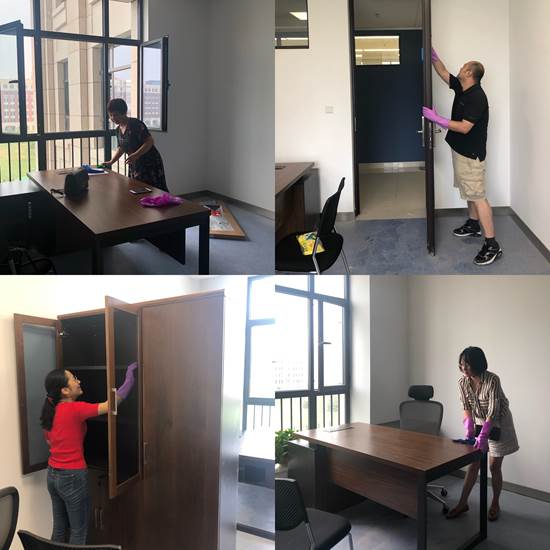 按照学校关于加快创新港试运行工作通知的要求,人文与社会科学研究院积极做好各项筹备工作,有序推进二次装修及师生工位安装等建设,截止8月24日,研究院最后一批家具部件已全部安装到位,为新生开学、行政及教师正式入驻创新港开启新学期做好硬件准备。为进一步推进研究院教职工“以港为家、奋斗有为”的思想意识和责任担当,研究院组织全体行政人员及各研究所师生赴创新港打扫卫生。