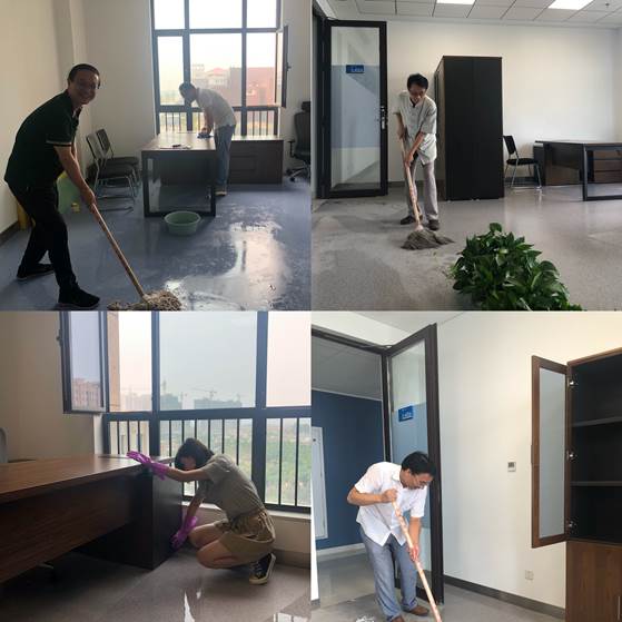 正值周六,往返学校与创新港的班车较少,但pg电子app教职工热情高涨,纷纷主动报名。pg电子app专门包车,组织40余名教职工前往创新港。在打扫过程中,教职工团结合作、齐心协力,不怕苦、不怕累、不怕脏,将研究生工位区及办公空间的灰尘、垃圾清理得干干净净,并浇灌了办公室绿植。经过近6个小时的努力,打造出一个干净整洁、清爽宜人的新家园。