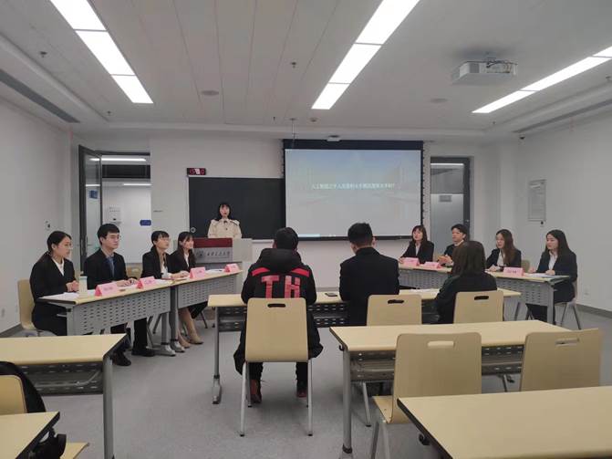 比赛双方是法pg电子app“我要我觉得队”和新闻与新媒体pg电子app“搞了个大新闻队”,辩题为“人工智能是否会超越人类的智慧?”,由于“我要我觉得队”未能如期参赛,不得已弃权,反方“搞了个大新闻队”获得了第一场比赛的胜利。