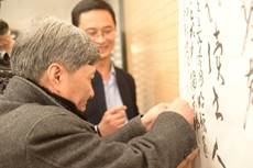 画面中,一棵松针叶繁盛,斜挑而出,傲然于山河之间,右侧题有“如松之盛”,左侧题有唐代李群玉的《书院二小松》诗一首。绘画由硕9108班李明韬同学现场泼墨而成,书法由硕9108班周正同学题写。作品意在表达做一个如松一般的人,即使环境恶劣依旧风骨依然,如同在大西北扎根的交大一般,果毅力行,忠恕任事。悠悠琴声中,张迈曾书记和王树国校长为书画作品盖下了“饮水思源”和“西迁新传人”印章,对作品给予了极大的肯定。