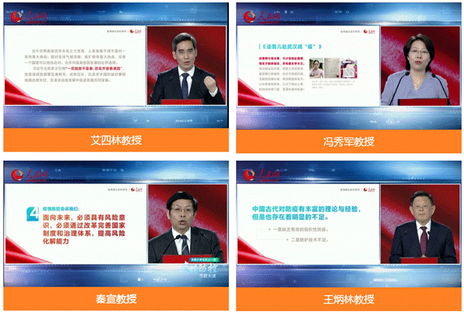本次活动特别邀请到清华大学艾四林、中国人民大学秦宣、北京师范大学王炳林、中央财经大学冯秀军四位教授,解读以习近平同志为核心的党中央关于疫情防控的决策部署,分析中国抗疫彰显的中国特色社会主义制度优势,讲述防疫战疫一线的感人故事。