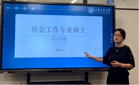 MSW中心主任彭瑾副教授向2019级社会工作专业硕士与社会组织负责人具体介绍了西安交通大学社会工作专业实习的理念与基本要求,包括社会工作专业实习的内容、意义、实习时间要求、实习日志、机构与督导责任等。