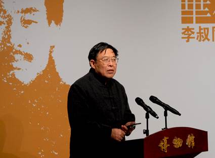 中国书法家协会隶书委员会委员吴振锋以“弘一是谁?李叔同是谁?”为题进行了热情洋溢的发言,他表示李叔同作为一位20世纪富于传奇色彩的人物,其于62年短暂生命历程中几乎在所有文艺领域做出堪称大师级别的贡献,他以“一本常翻常新的大书”概语,盛赞李叔同在中国近现代历史上“文化标识”式的成就,表示今天对他的纪念正是要将文化道统承传、拓展下去。同时,他提出“李叔同”这一名号更代表着青年的创新创造、勇于担当和敢于实践,目下的交大已是国内教育先锋,而在21世纪更将成为科技先锋与新时代文化方向的引领者,勉励交大学子弘扬李叔同艺术精神、传承交大文化,脚踏实地成长报国。