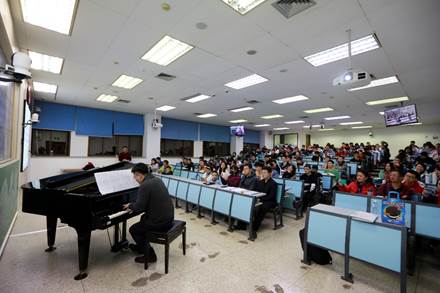 最后一首作品是《夕阳箫鼓》,由陶敏霞教授亲自表演,音乐次鲜明、错落有致、音色惟妙惟肖,恰似一幅优美的山水画面展现在面前,同学们听后掌声雷动、欲犹未尽。