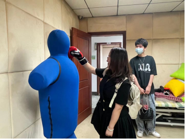 在参观过程中,宣泄小人、沙盘、生物反馈仪、按摩椅等有趣的设施设备引起了大家的兴趣,同学们在轻松愉快的氛围中,了解到了更多的情绪调节的方式,找到了诸多乐趣。老师还谈到,心理咨询中心不仅可以测评心理健康指数,而且可以进一步帮助同学们了解自己的性格与内心。