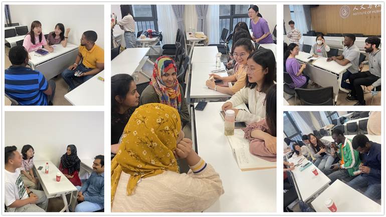 接下来的自由交流环节,由国际学生和国内学生自由分组,同学们交流了在交大学习生活的经历、分享了各自学科中的一些趣事,并对彼此国家文化和风俗中好奇已久的疑问展开了具体的问答,气氛热烈,欢声笑语不断。
